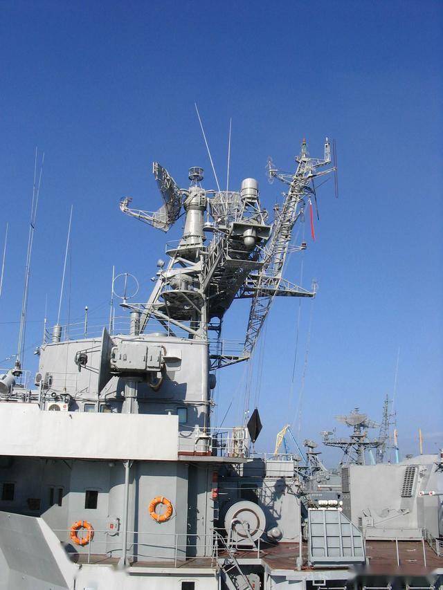 舰尾塔楼式主桅六层布置电子战装备。自S-2003起,第四层设有“Ring”电子对抗雷达天线台(仅“刻赤号”安装)。桅侧墙设MP-150“Gurzuf-A”和“Gurzuf-B”电子战雷达球型天线M“Zaliv”及MPР-11-14/13-14侦察雷达。桅顶装MR-600“Voskod”雷达天线。