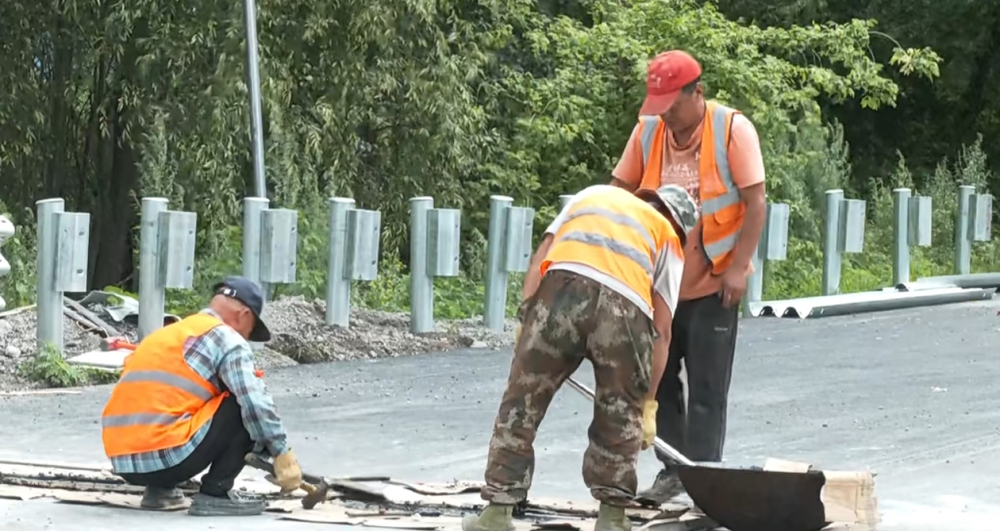记者在小亮公路鹤立至胜利段改扩建的胜利跨铁立交桥施工现场看到,施工人员忙着安装桥梁的附属设施。鹤立跨铁立交桥、胜利跨铁立交桥已完成梁板吊装,正在进行桥面施工,9月末完工。主体完工的黑色路面蜿蜒向前延伸着,如一条精美的缎带连接起沿线的乡镇村屯,整个工程将于今年交工通车。